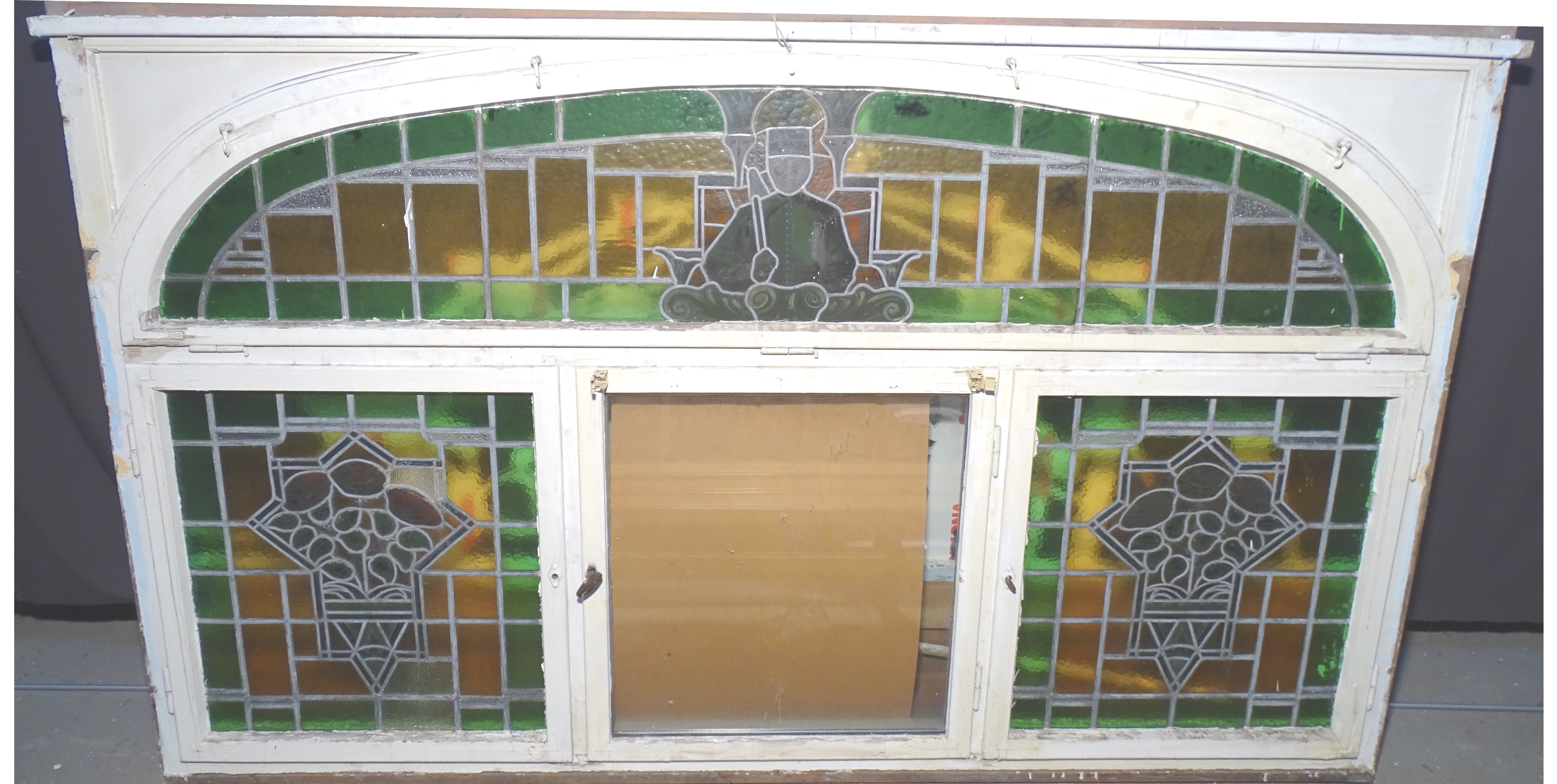 Leider fehlt, wie auf der Abbildung zu sehen, der mittlere Fensterflügel. Aus den Unterlagen sowie Recherchearbeiten geht nicht hervor, welches Motiv in der Mitte zu sehen war. Einzig eine Postkarte des Gasthofs aus den 1930er Jahren soll die Gaststätte mit dem Fenster zeigen.