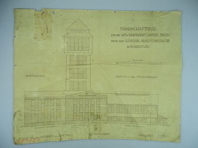 Wir leben im digitalen Zeitalter. Smartphones, Tablets oder Computer erstellen in kürzester Zeit Bilder, Pläne oder Skizzen. Der Bediener oder die Bedienerin des Geräts ist lediglich für die Eingabe der richtigen Daten zuständig. In der Arbeitswelt des beginnenden 20. Jahrhunderts war das Bild im wahrsten Sinne des Wortes noch ein ganz anderes. Ein sehr schönes Beispiel dafür und aus diesem Grund das erste Objekt des Monats 2020, ist eine Architekturzeichnung von Förderturm, Schachthaus, Umformerhalle und Mannschaftsbad des Kaiserin-Augusta-Schachtes aus dem Jahr 1922.