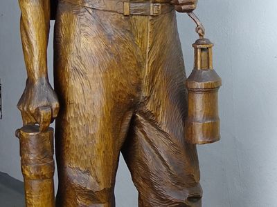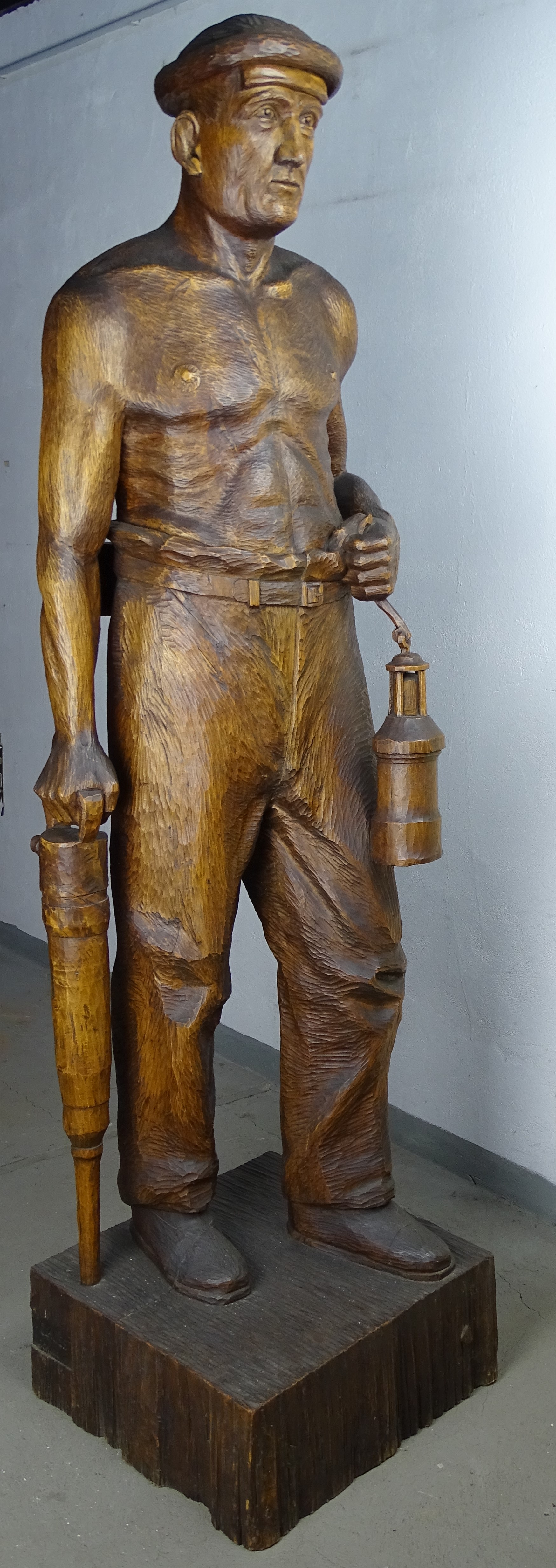 Bleib gesund! Ähnlich wie der Bergmannsgruß „Glück auf!“, haben sich diese Worte aktuell vieler Orts zu einer Grußformel etabliert. Dass die Gesundheit gerade auch für die Bergarbeiter im Steinkohlenbergbau das höchste Gut war, dafür steht das Objekt des Monats Mai. Abgebildet ist ein lebensgroßer, mit Sockel knapp zwei Meter messender Hauer mit Pickhammer und Grubenlampe. Er flankierte einst eine Treppe des Bergarbeiterheims in Hartenstein.