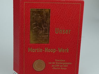 Eine Besonderheit des Objekts des Monats ist, dass es von der Werksgruppe des Deutschen Roten Kreuzes der DDR gewidmet wurde. Der genaue Anlass für die Erstellung der Publikation ist leider nicht bekannt. Da die Aufzeichnungen zum Martin-Hoop-Werk 1974 enden, kann davon ausgegangen werden, dass das Werk wahrscheinlich 1975 verfasst wurde. Abschriften von historischen Dokumenten im Anhang des 92-seitigen Buches deuten darauf hin, dass dem Verfassen eine gründliche Quellenrecherche vorausgegangen ist. Die Aufmachung der Publikation - u.a. die Tatsache, dass die Fotografien eingeklebt und von Hand beschriftet sind – gibt Grund zur Annahme, dass nur wenige Stücke des Buches hergestellt wurden. Dem Bergbaumuseum ist bisher kein weiteres Exemplar bekannt.