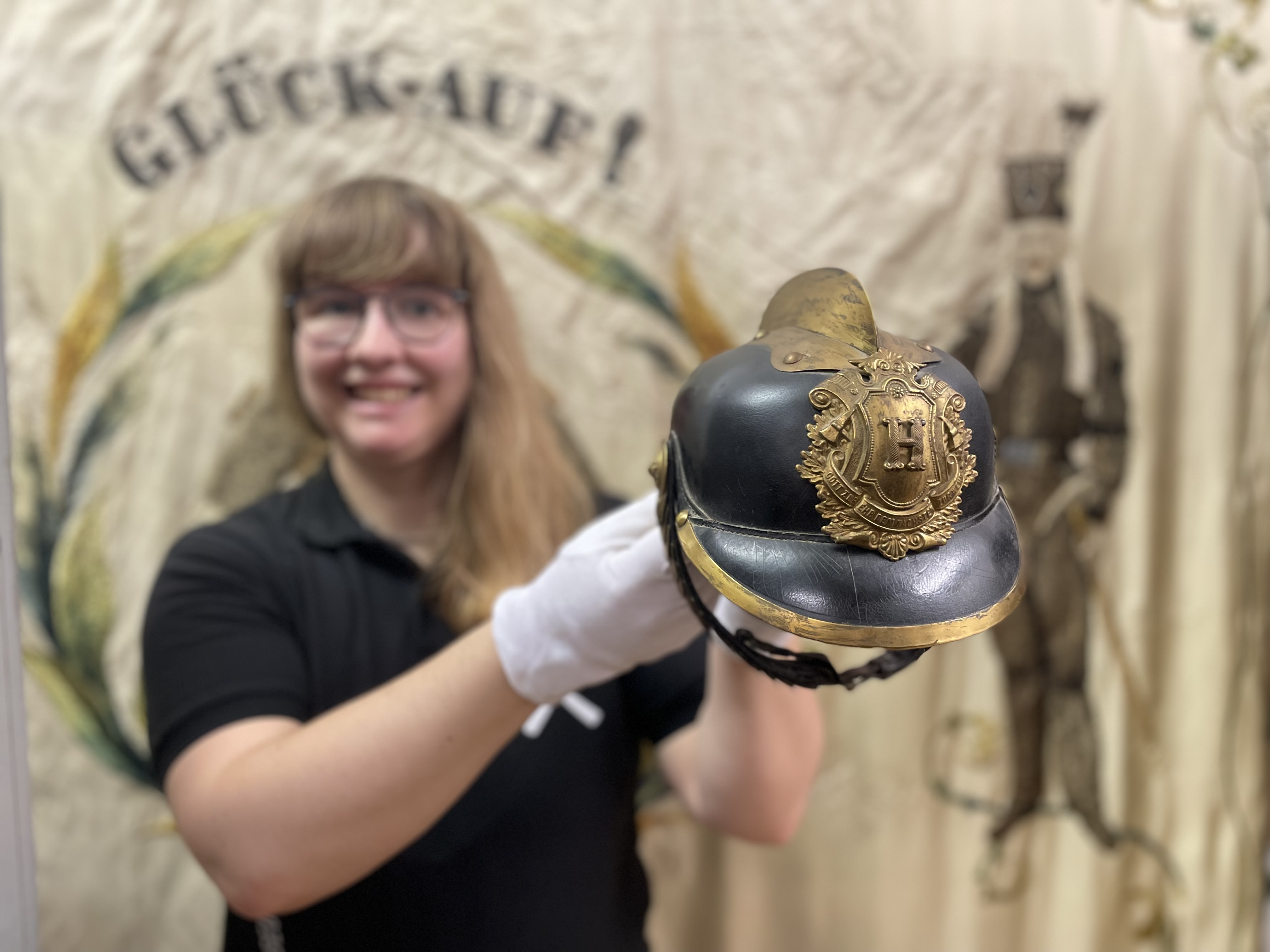 Der Feuerwehrhelm hat keinen direkten Bezug zum sächsischen Steinkohlenbergbau, ist aber dennoch Bestandteil des reviergeschichtlichen Sammlungsbereichs des Bergbaumuseums. Der Helm steht stellvertretend für die Freiwilligen Feuerwehren in der Region, die auch für die Steinkohlenbergwerke wichtig waren. Denn im Lugau-Oelsnitzer Steinkohlenrevier bildeten sich erst im 20. Jahrhundert Werksfeuerwehren, vorher verließ man sich auf die Freiwillige Feuerwehren.
