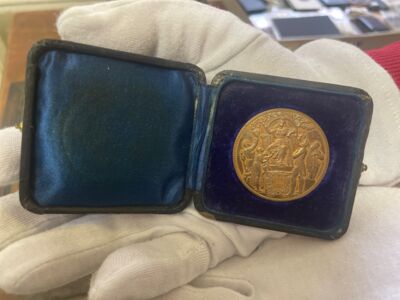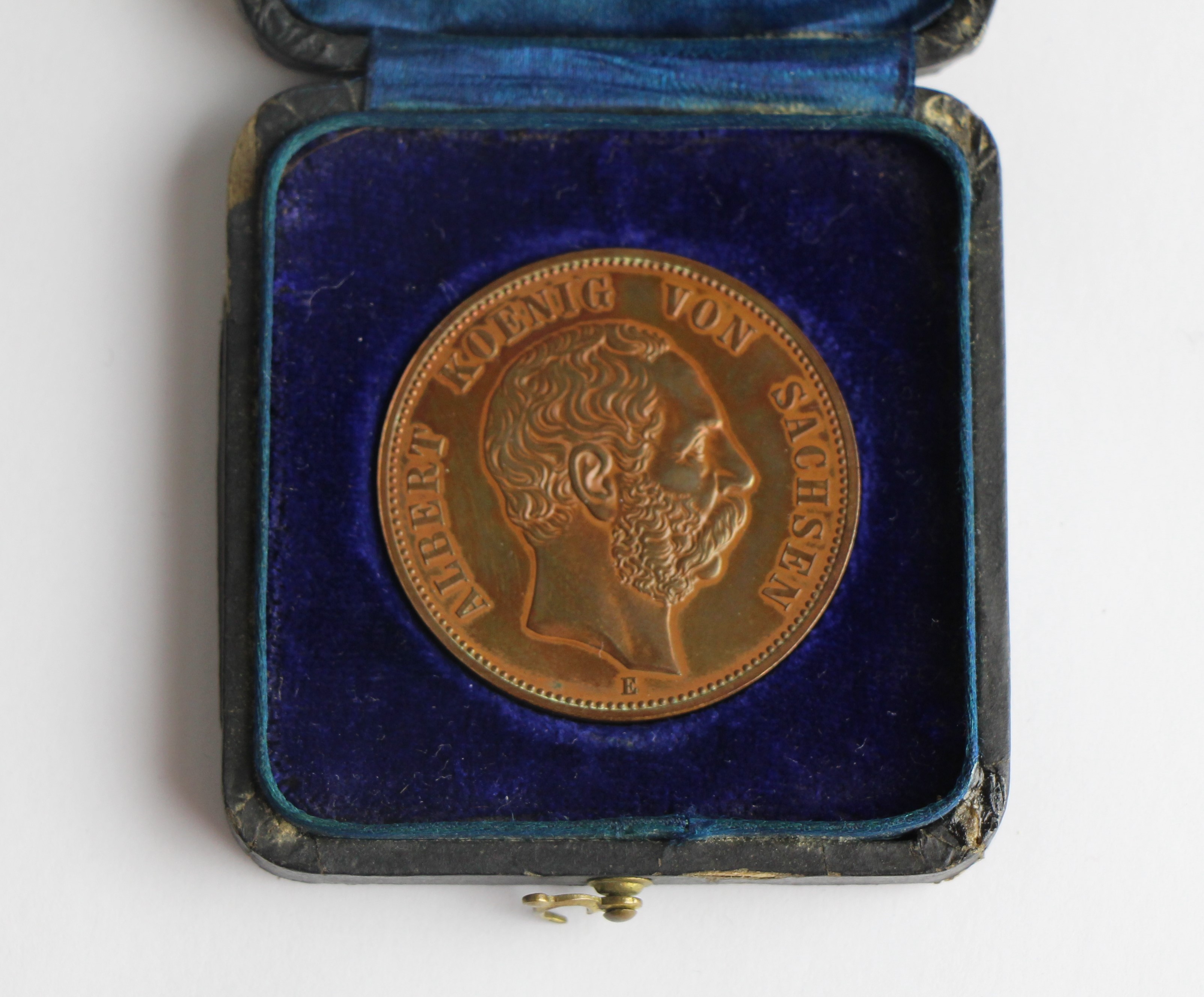 Die sogenannte „Wettin-Medaille“ befindet sich noch im originalen Etui und wurde exemplarisch als Beleg für die Teilnahme der sächsischen Steinkohlenwerke an der 800-Jahrfeier des Hauses Wettin in die Sammlung des Bergbaumuseums aufgenommen.