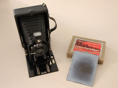 Tatsächlich handelt es sich um ein kompaktes Modell, das einfach zusammengefaltet und in einer handlichen Box transportiert werden konnte. Dabei wurde der lichtundurchlässige Balg, der Gehäuse und Objektiv miteinander verbindet, über den Laufboden zurück geschoben und gefaltet. So waren Faltenbalg und Objektiv in geschlossenem Zustand geschützt. Zahlreiche Fotografien im umfangreichen Fotobestand des Bergbaumuseums dürften bis in die 1930er Jahre mit dieser oder ähnlichen Kameras aufgenommen worden sein.