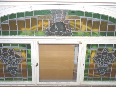 Leider fehlt, wie auf der Abbildung zu sehen, der mittlere Fensterflügel. Aus den Unterlagen sowie Recherchearbeiten geht nicht hervor, welches Motiv in der Mitte zu sehen war. Einzig eine Postkarte des Gasthofs aus den 1930er Jahren soll die Gaststätte mit dem Fenster zeigen.