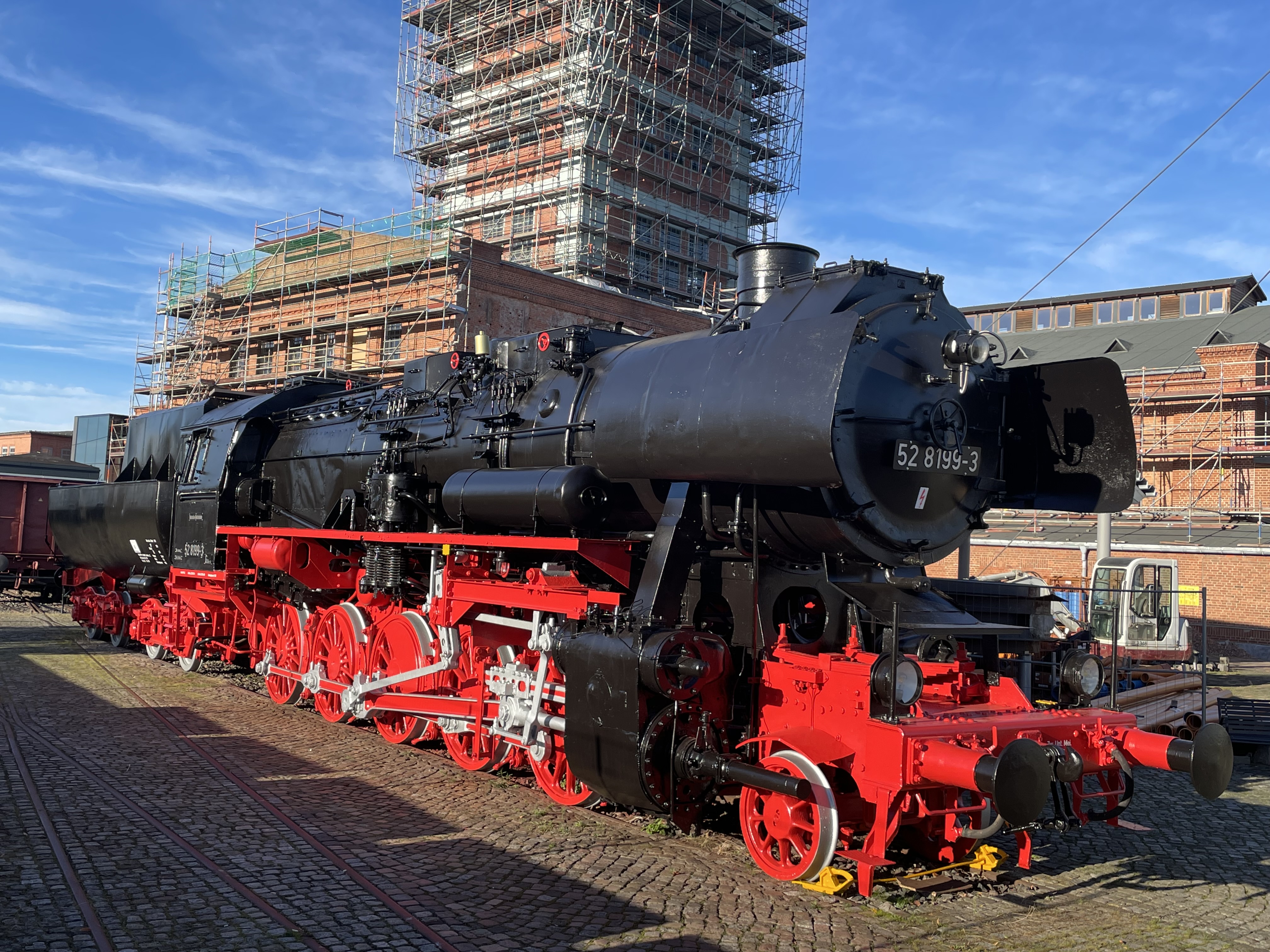 Seit 1996 steht die Lok am Museum und ist seitdem etwas in die Jahre gekommen. Daher war es an der Zeit für eine dringend benötigte Schönheitskur. Dieser Aufgabe stellten wir uns mit allen Herausforderungen. Die Dampflokomotive der Baureihe 52, die vorletzte rekonstruierte Lok dieser Baureihe, erhielt eine grundhafte Aufarbeitung.
